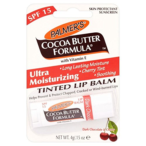 Unique & convenient oval- shaped stick. Made with pure Cocoa Butter and Vitamin E to soften , relieve and protect dry & chapped lips. Enriched with Carnauba wax to give a smooth lip finish. SPF 15 helps protect lips against the harmful UV rays. Dark chocolate & Cherry flavour. Light cherry tint for a touch of glamour.